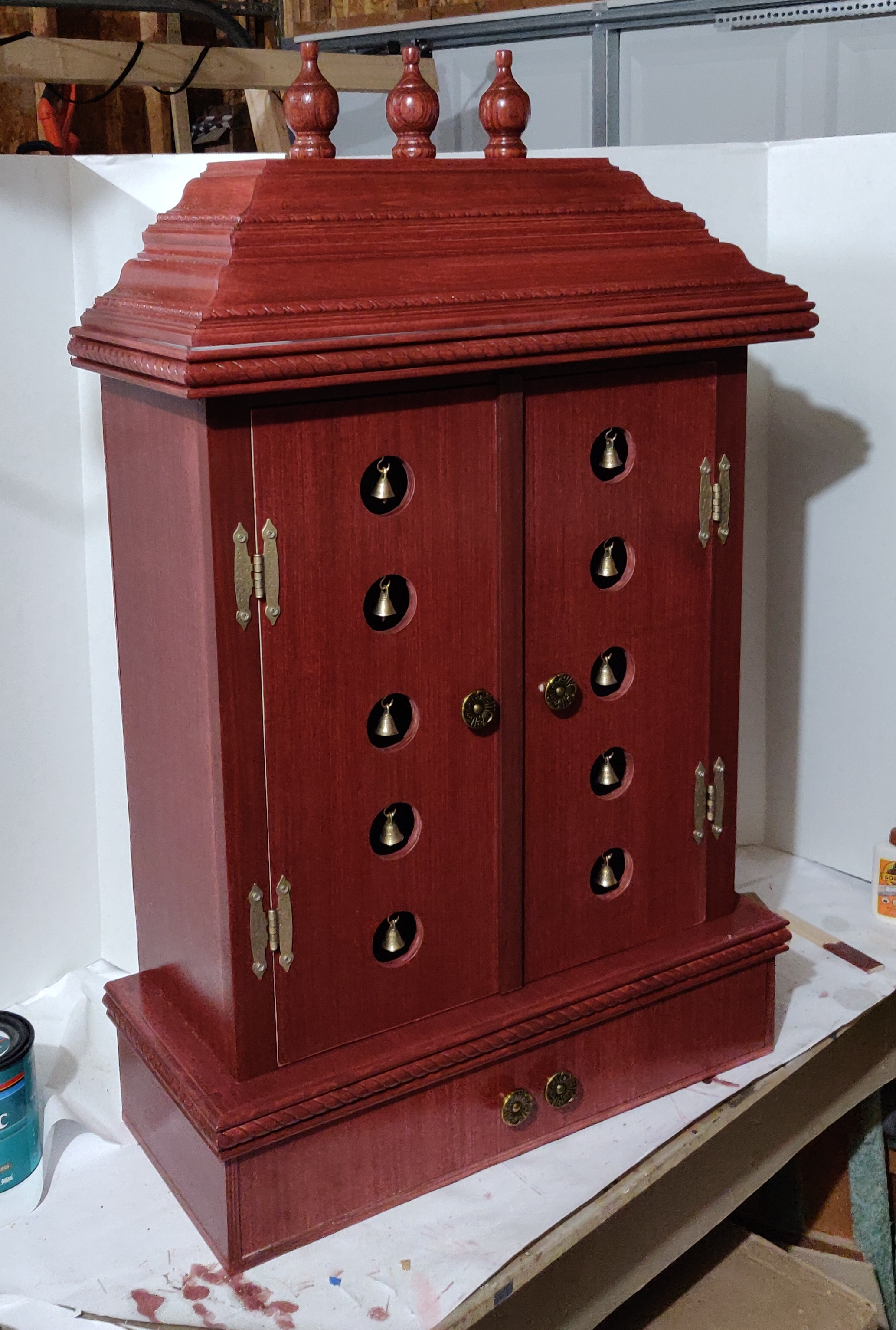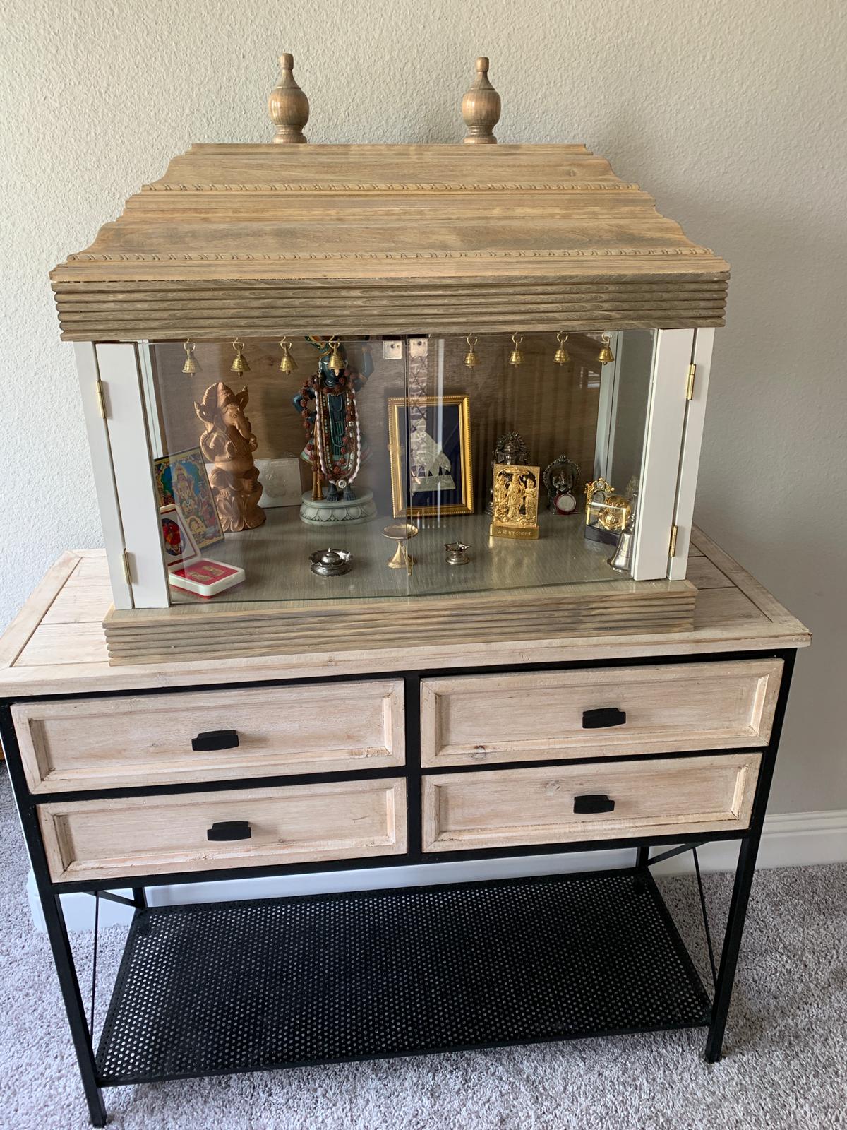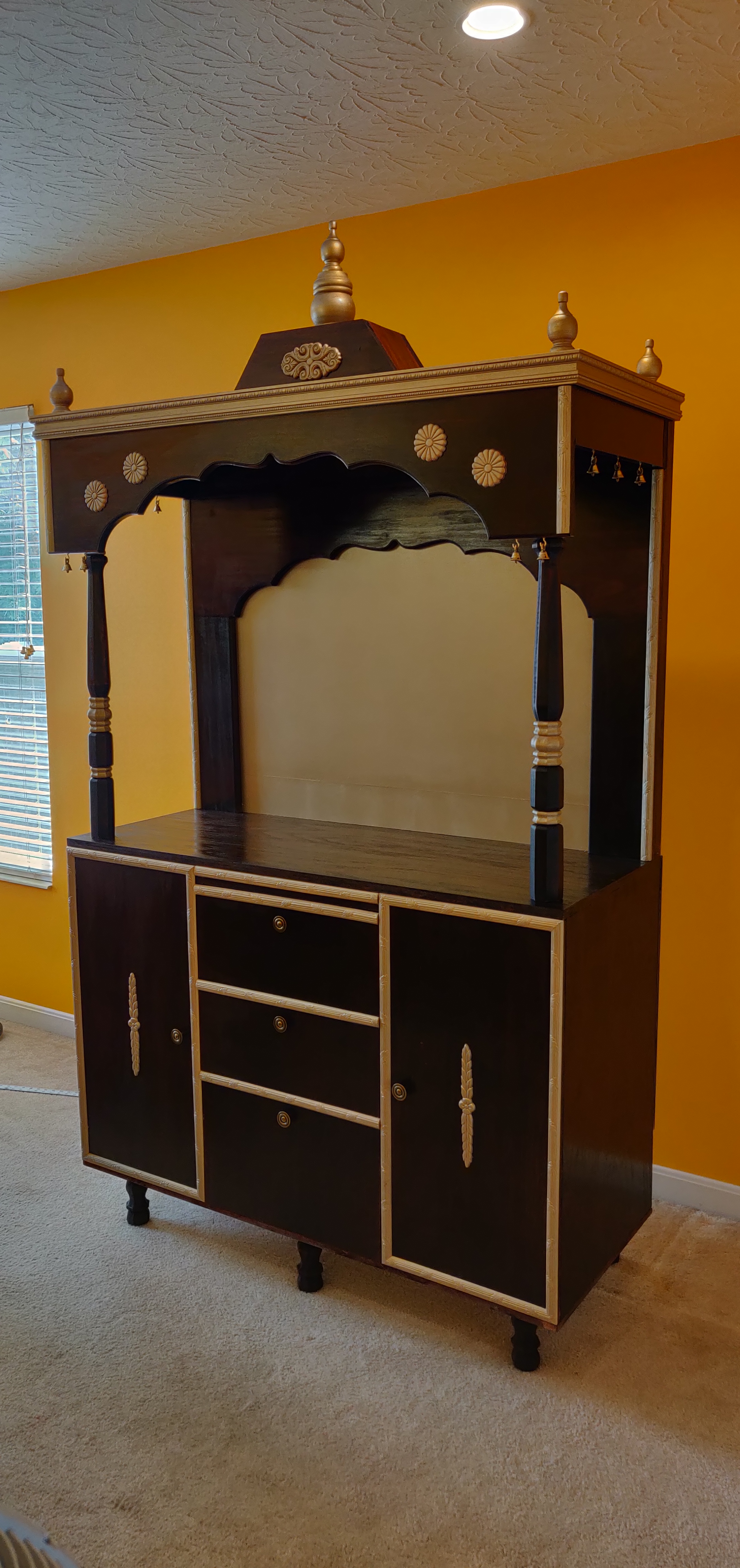 Our Mandirs are built with the highest quality materials and use high grade stains to get a beautiful finish. Mandirs are built using High Grade/Premium plywood along with Poplar and WhiteWood trim to ensure you have a solid piece of furniture that will last a lifetime! Visit us on Instagram for more models and options https://www.instagram.com/cincymandirs/